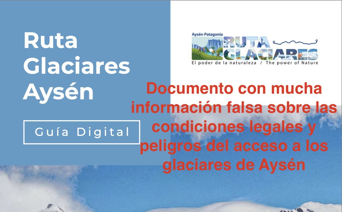 El mismo tipo de información no verificada, y en algunos casos peligrosa, sobre las actividades turísticas y vías de acceso a los glaciares de la zona esta publicitada en la guía oficial de Sernatur ➡️Contactos para demandas relativas a todo tipo de perjuicios sufridos:
